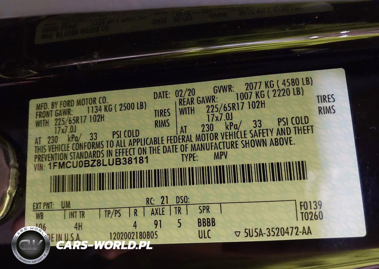 IAAI Nr: I-44601162 VIN: 1FMCU0BZ8LUB38181 Port: Savannah, GA