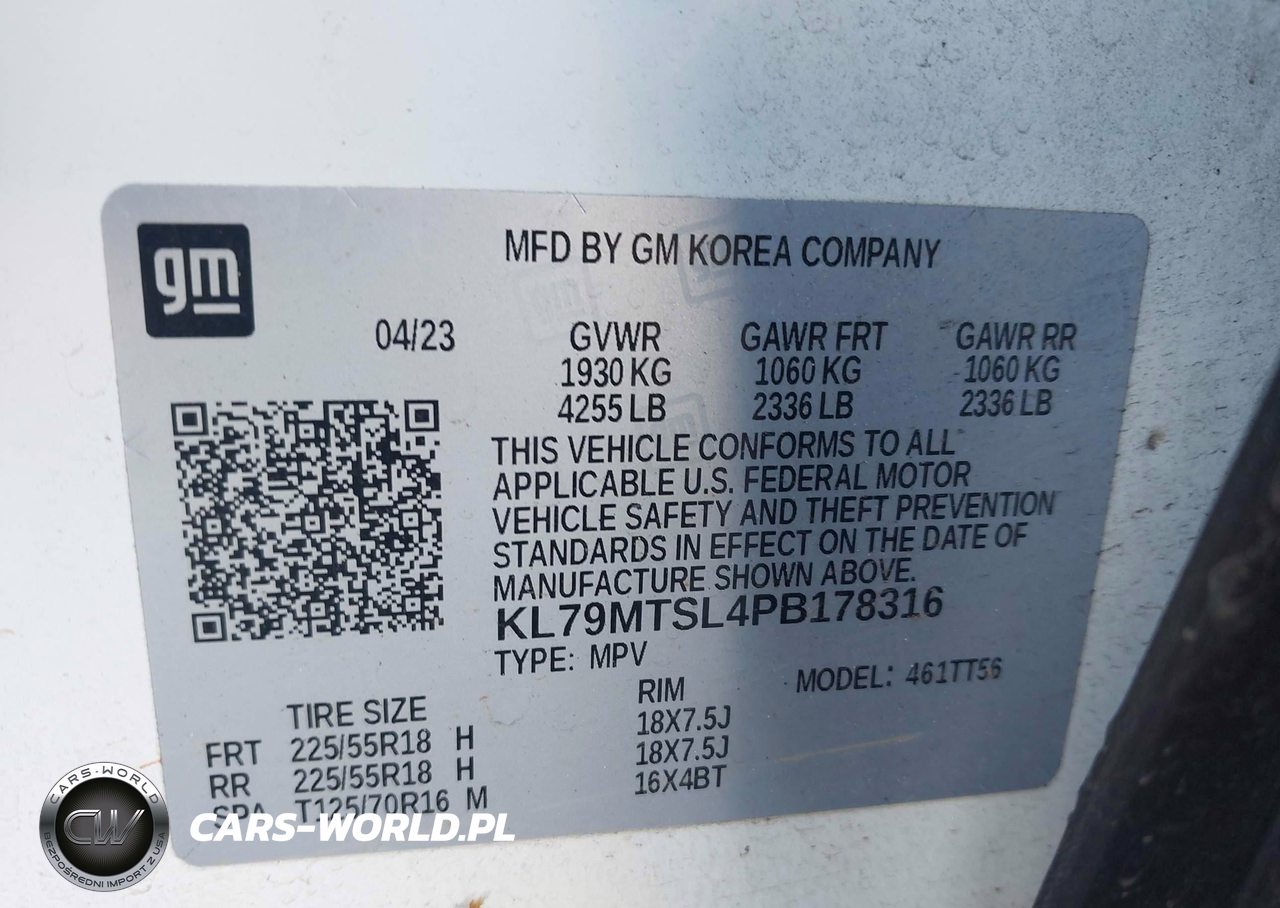 IAAI Nr: I-44601243 VIN: KL79MTSL4PB178316 Port: Savannah, GA