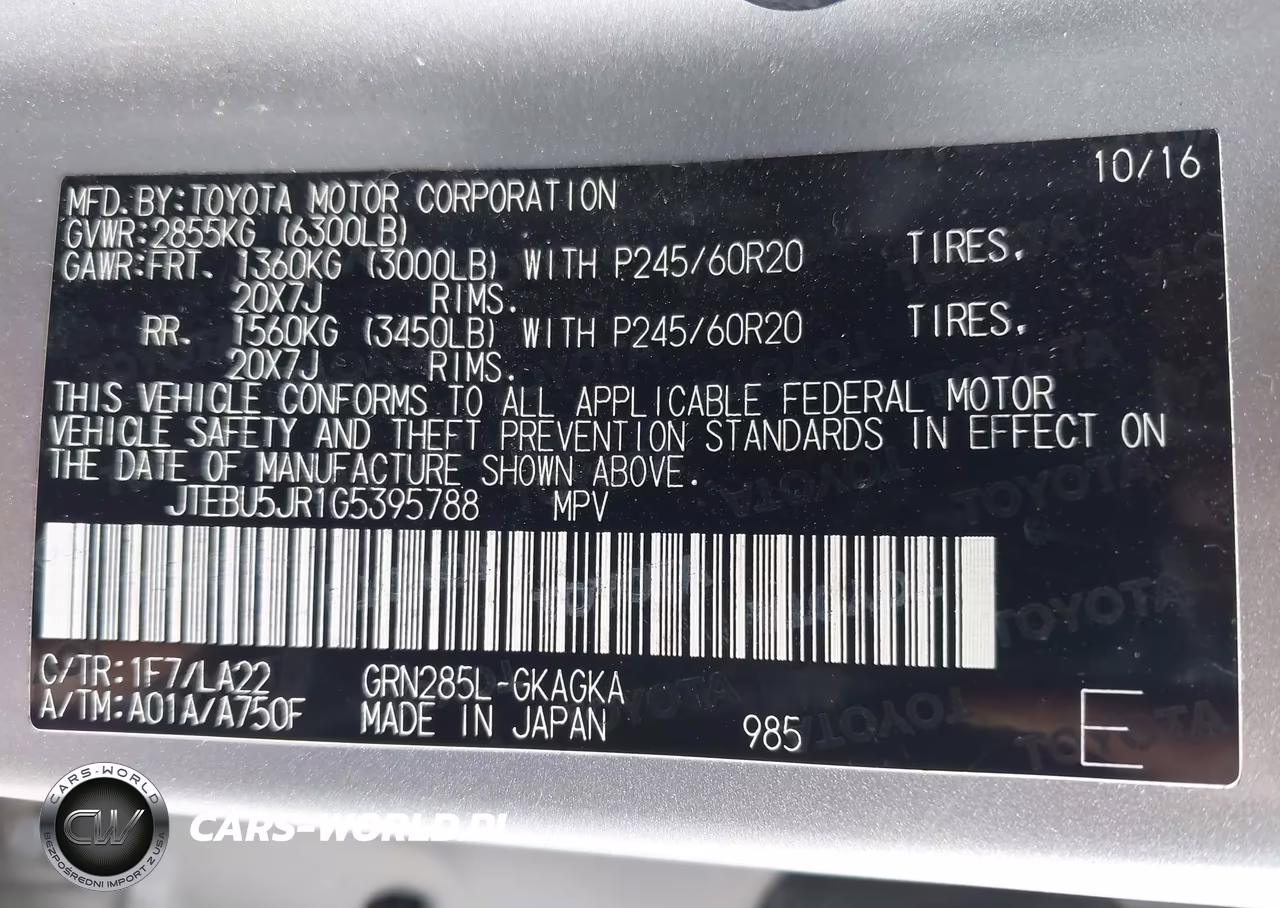 IAAI Nr: I-44602722 VIN: JTEBU5JR1G5395788 Port: Los Angeles, CA