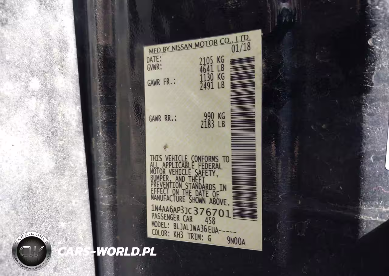 IAAI Nr: I-44603516 VIN: 1N4AA6AP3JC376701 Port: Indianapolis, IN
