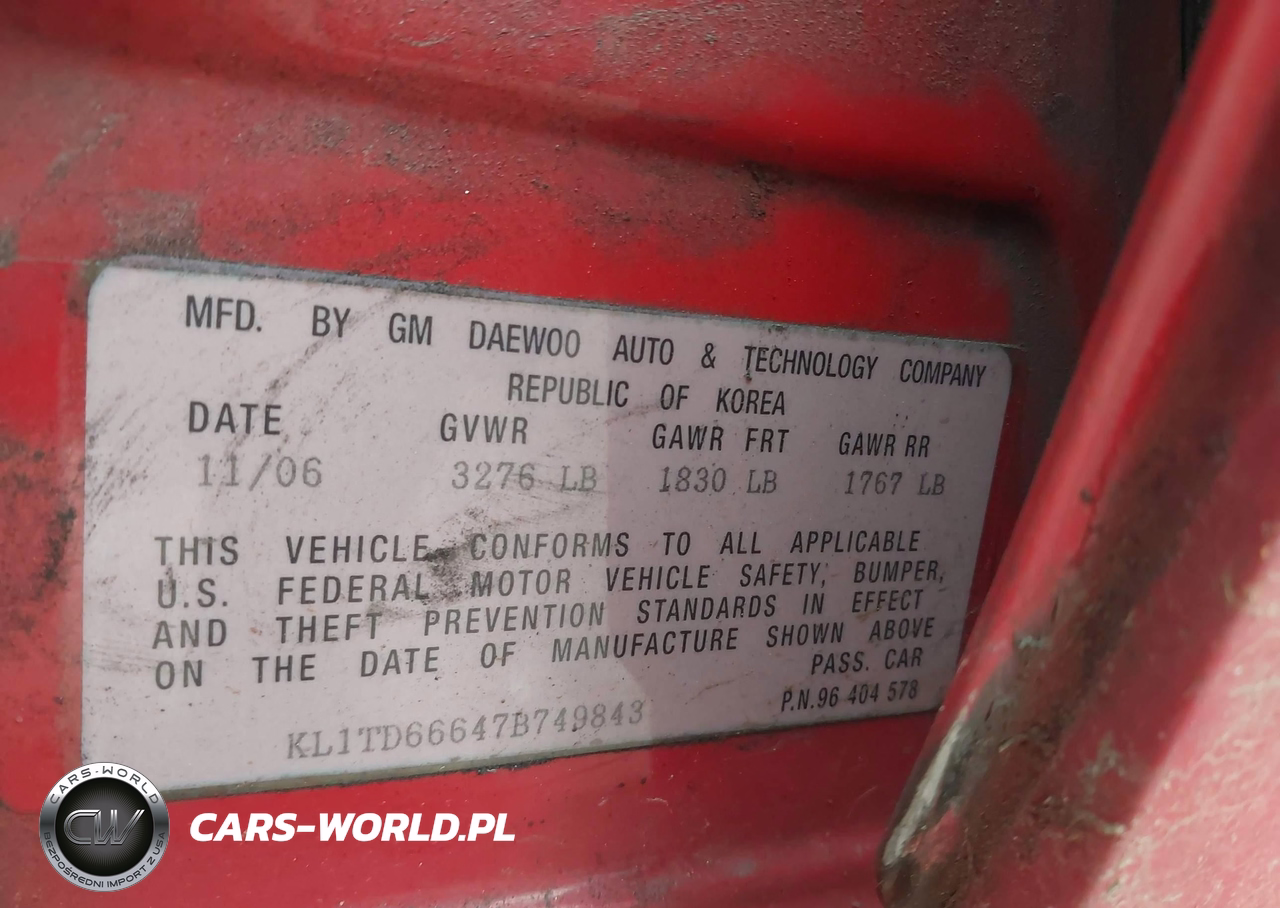 IAAI Nr: I-44603974 VIN: KL1TD66647B749843 Port: Savannah, GA