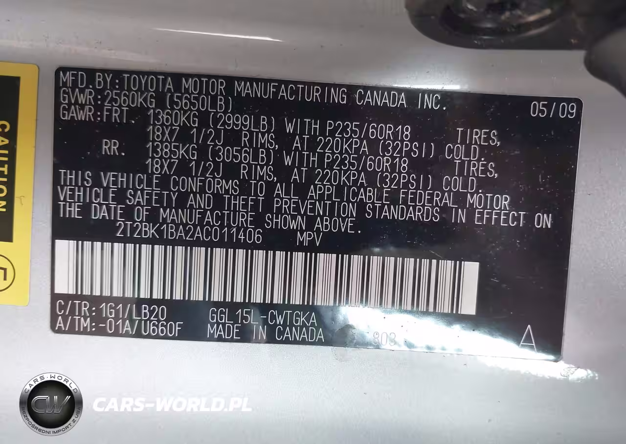 IAAI Nr: I-44604032 VIN: 2T2BK1BA2AC011406 Port: Elizabeth, NJ