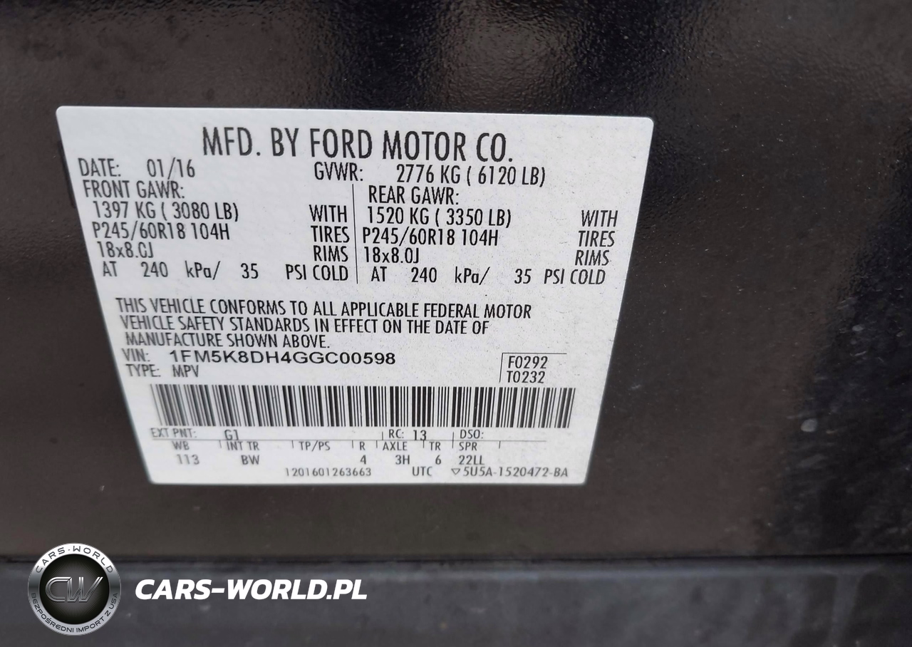 IAAI Nr: I-44604268 VIN: 1FM5K8DH4GGC00598 Port: Savannah, GA