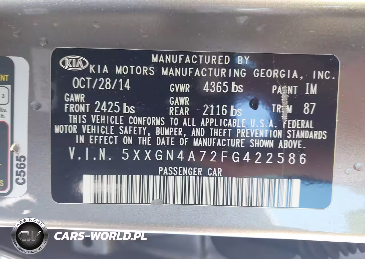 IAAI Nr: I-44604344 VIN: 5XXGN4A72FG422586 Port: Savannah, GA