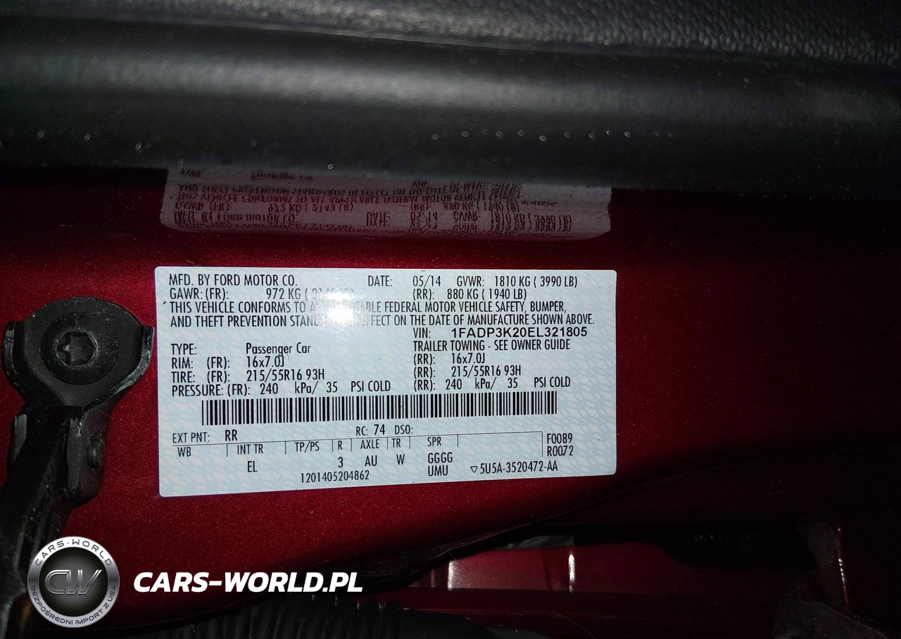 IAAI Nr: I-44605772 VIN: 1FADP3K20EL321805 Port: Los Angeles, CA