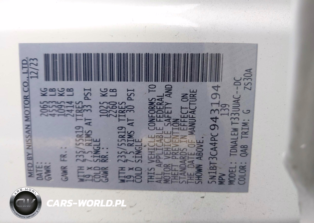 IAAI Nr: I-44606007 VIN: 5N1BT3CA4PC943194 Port: Savannah, GA