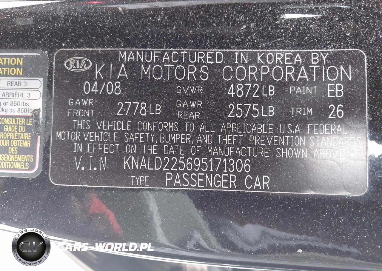IAAI Nr: I-44607701 VIN: KNALD225695171306 Port: Indianapolis, IN