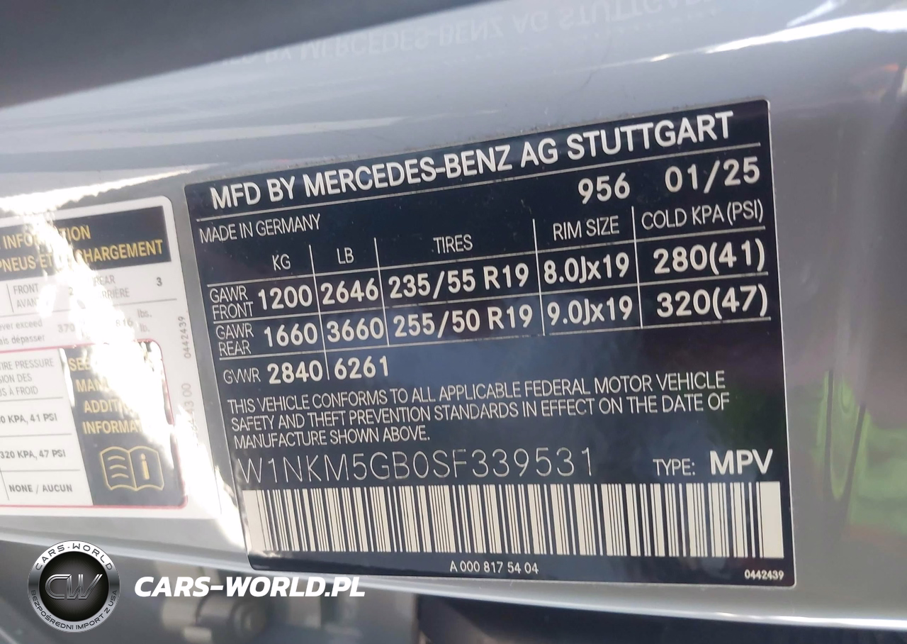IAAI Nr: I-44609042 VIN: W1NKM5GB0SF339531 Port: Indianapolis, IN