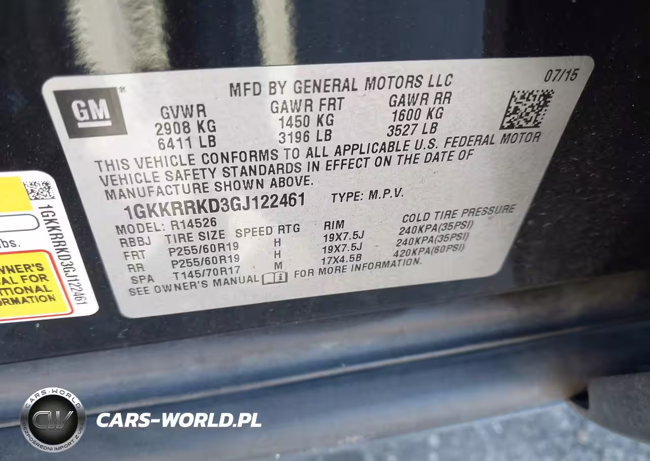 IAAI Nr: I-44609295 VIN: 1GKKRRKD3GJ122461 Port: Los Angeles, CA