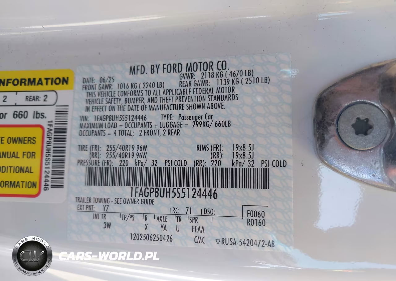 IAAI Nr: I-44609303 VIN: 1FAGP8UH5S5124446 Port: Los Angeles, CA