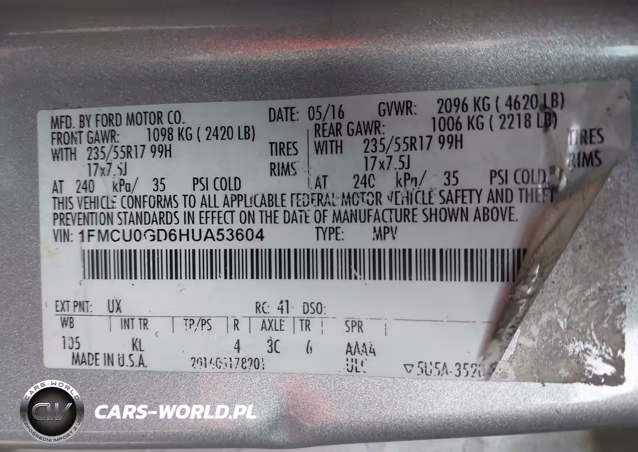IAAI Nr: I-44609323 VIN: 1FMCU0GD6HUA53604 Port: Indianapolis, IN