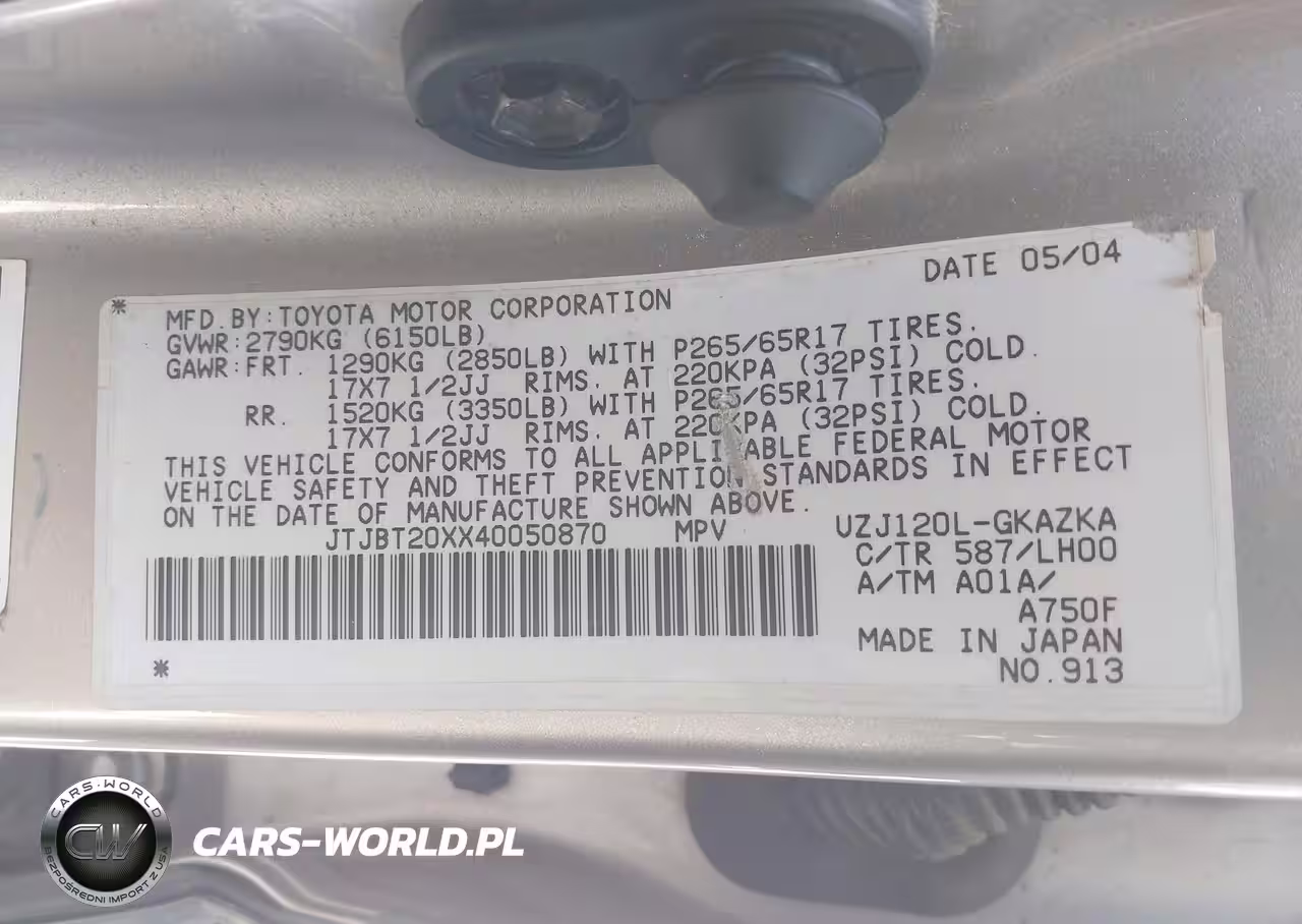 IAAI Nr: I-44609440 VIN: JTJBT20XX40050870 Port: Houston, TX