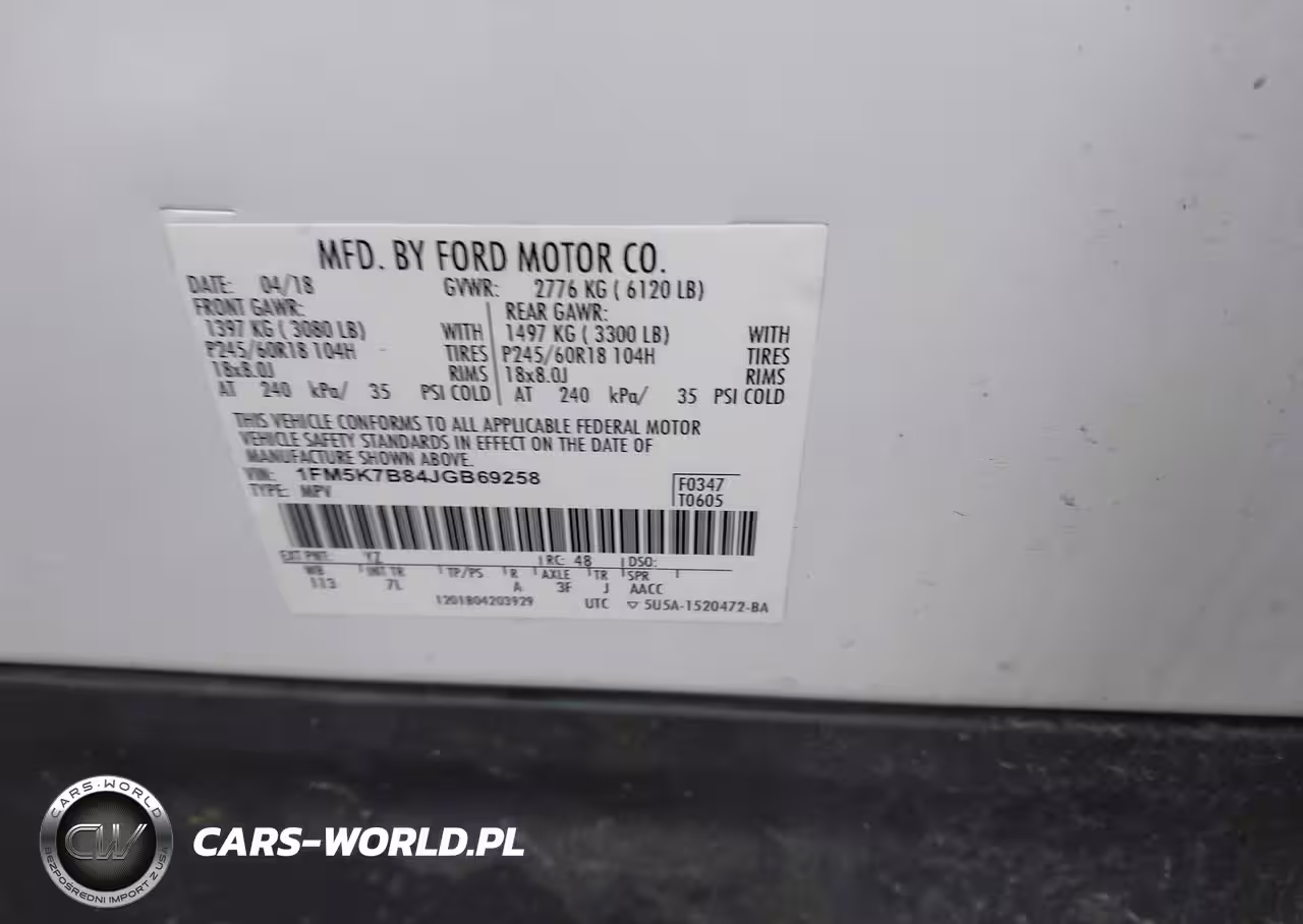IAAI Nr: I-44610184 VIN: 1FM5K7B84JGB69258 Port: Indianapolis, IN