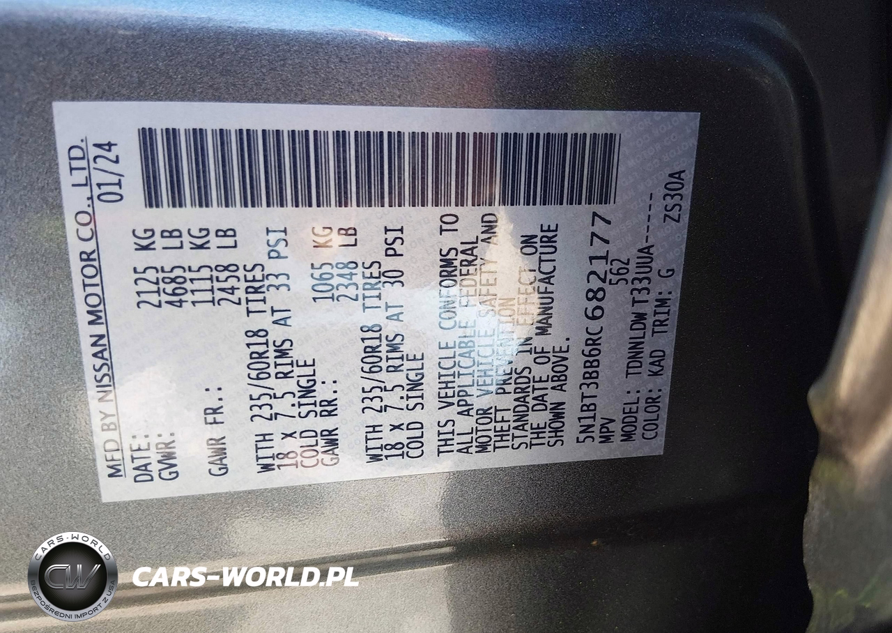 IAAI Nr: I-44610216 VIN: 5N1BT3BB6RC682177 Port: Savannah, GA