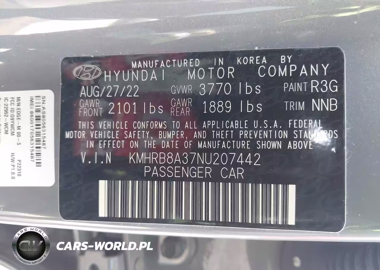 IAAI Nr: I-44610372 VIN: KMHRB8A37NU207442 Port: Los Angeles, CA