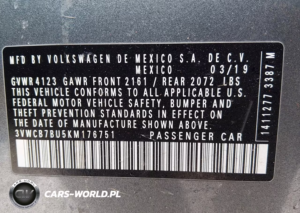 IAAI Nr: I-44610982 VIN: 3VWCB7BU5KM176751 Port: Indianapolis, IN