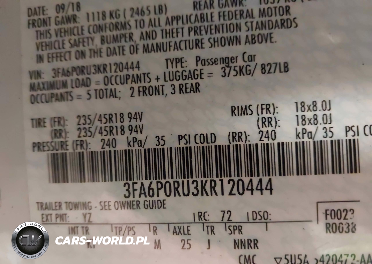 IAAI Nr: I-44611238 VIN: 3FA6P0RU3KR120444 Port: Indianapolis, IN