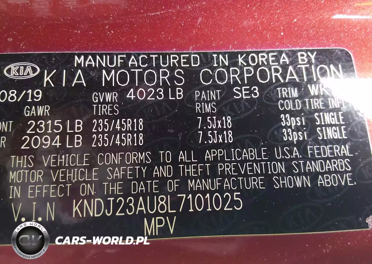 IAAI Nr: I-44611354 VIN: KNDJ23AU8L7101025 Port: Indianapolis, IN