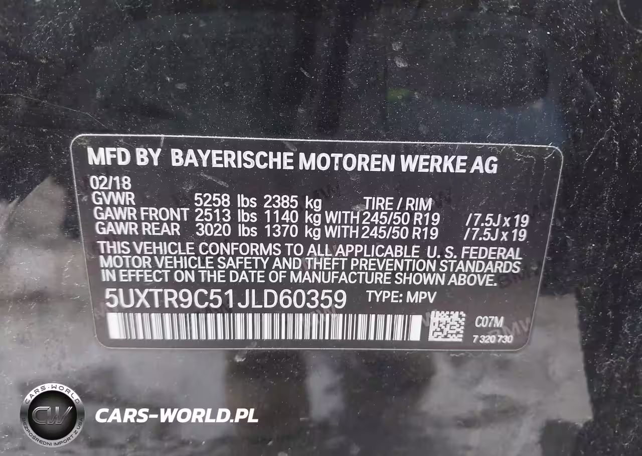 IAAI Nr: I-44611628 VIN: 5UXTR9C51JLD60359 Port: Elizabeth, NJ