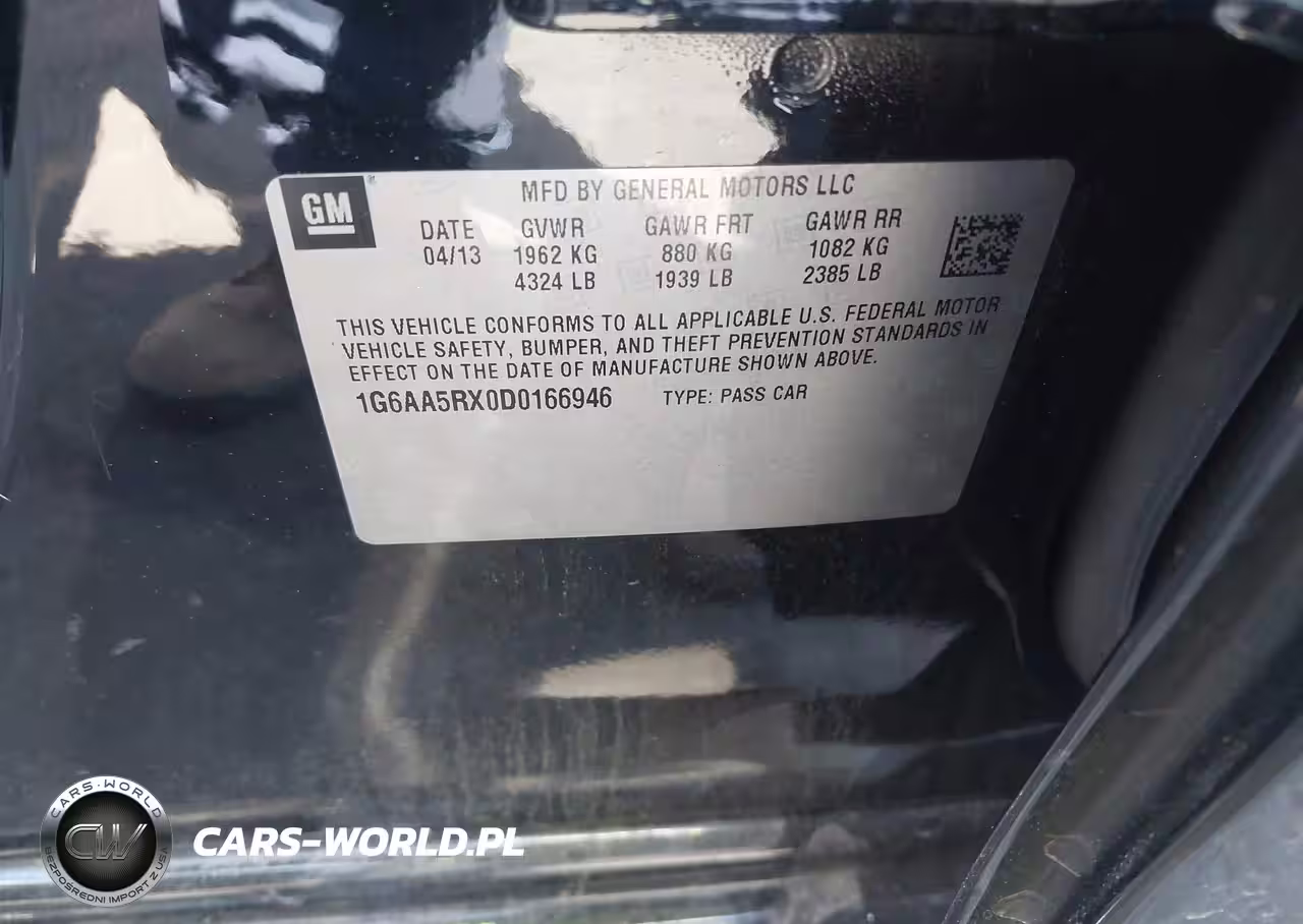 IAAI Nr: I-44612795 VIN: 1G6AA5RX0D0166946 Port: Los Angeles, CA