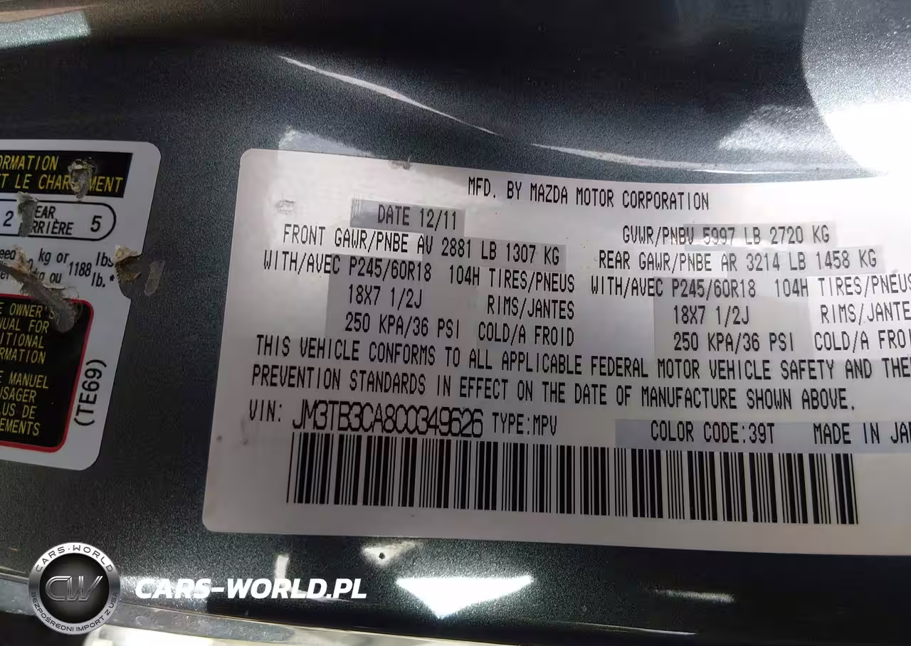 IAAI Nr: I-44613478 VIN: JM3TB3CA8C0349626 Port: Houston, TX