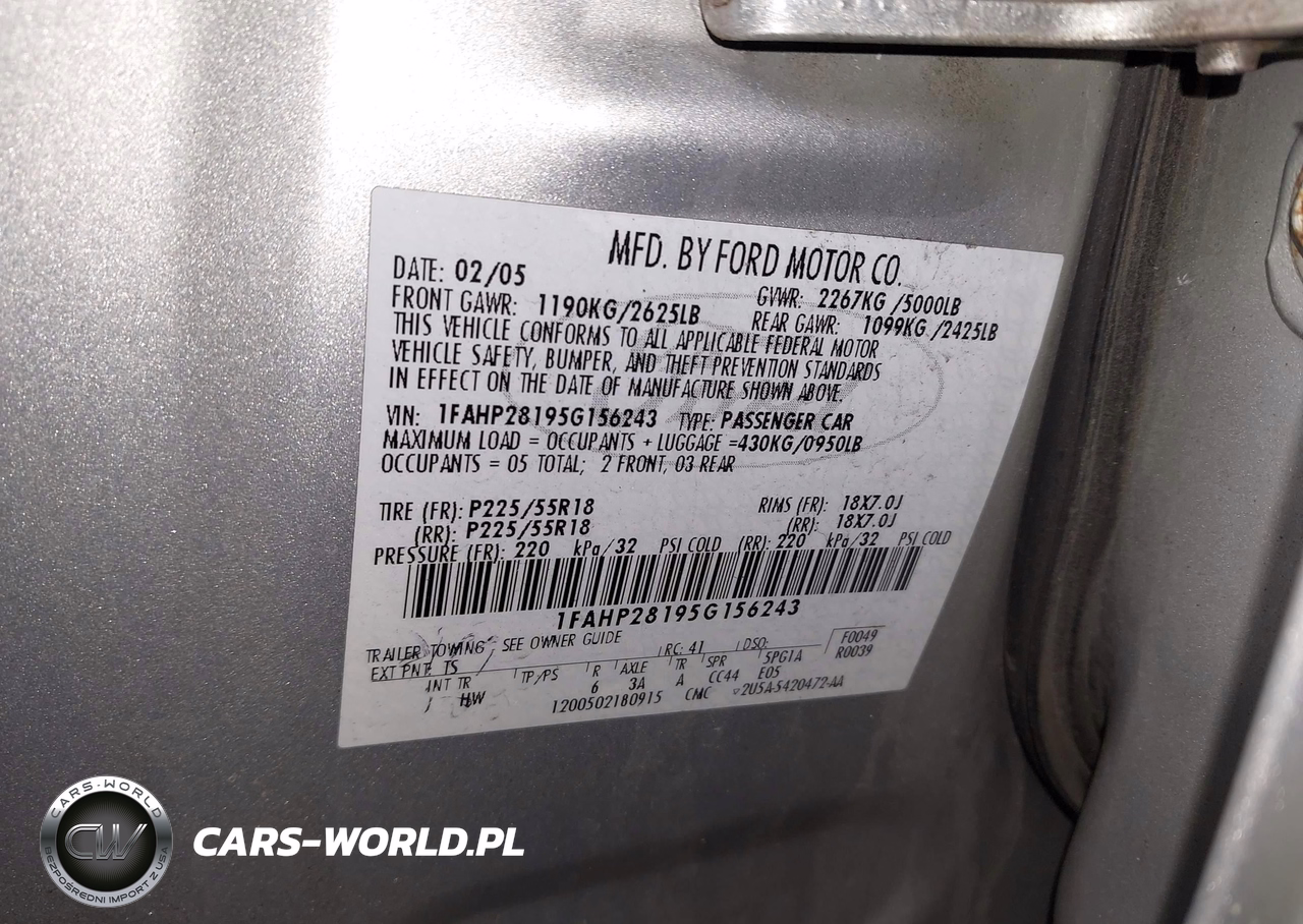 IAAI Nr: I-44613499 VIN: 1FAHP28195G156243 Port: Indianapolis, IN