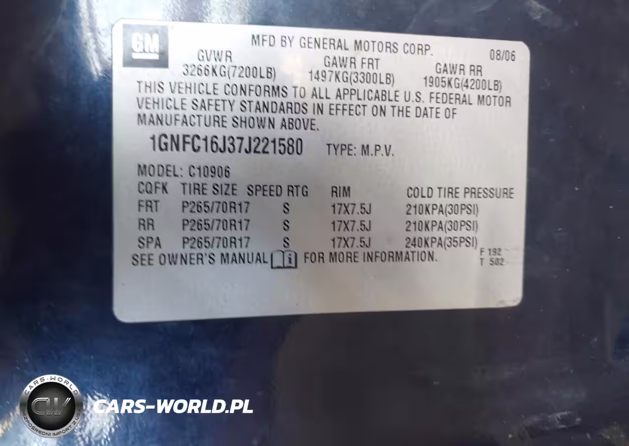 IAAI Nr: I-44613575 VIN: 1GNFC16J37J221580 Port: Los Angeles, CA
