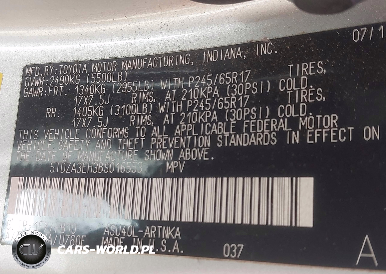 IAAI Nr: I-44613713 VIN: 5TDZA3EH3BS016553 Port: Houston, TX