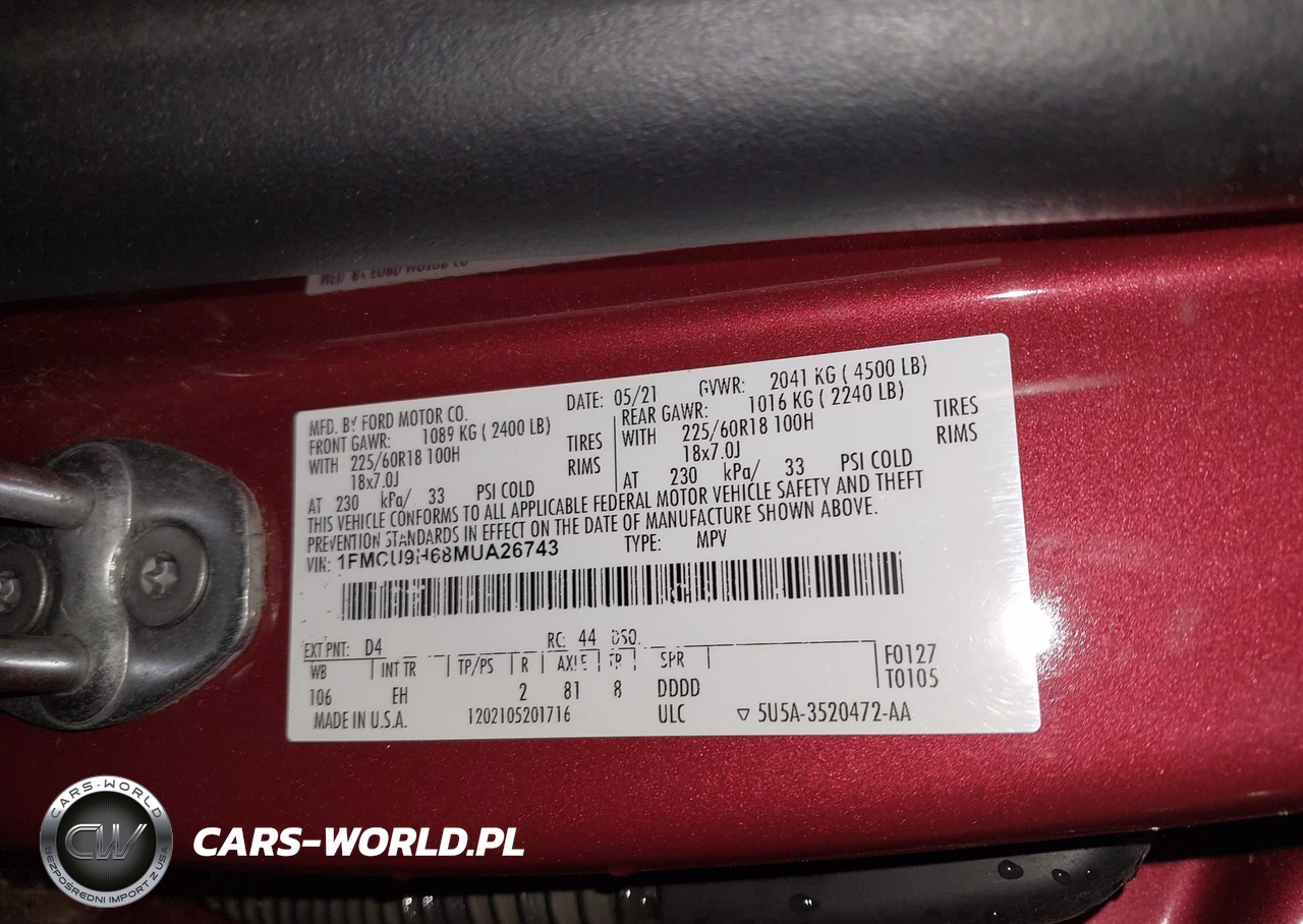 IAAI Nr: I-44613954 VIN: 1FMCU9H68MUA26743 Port: Indianapolis, IN