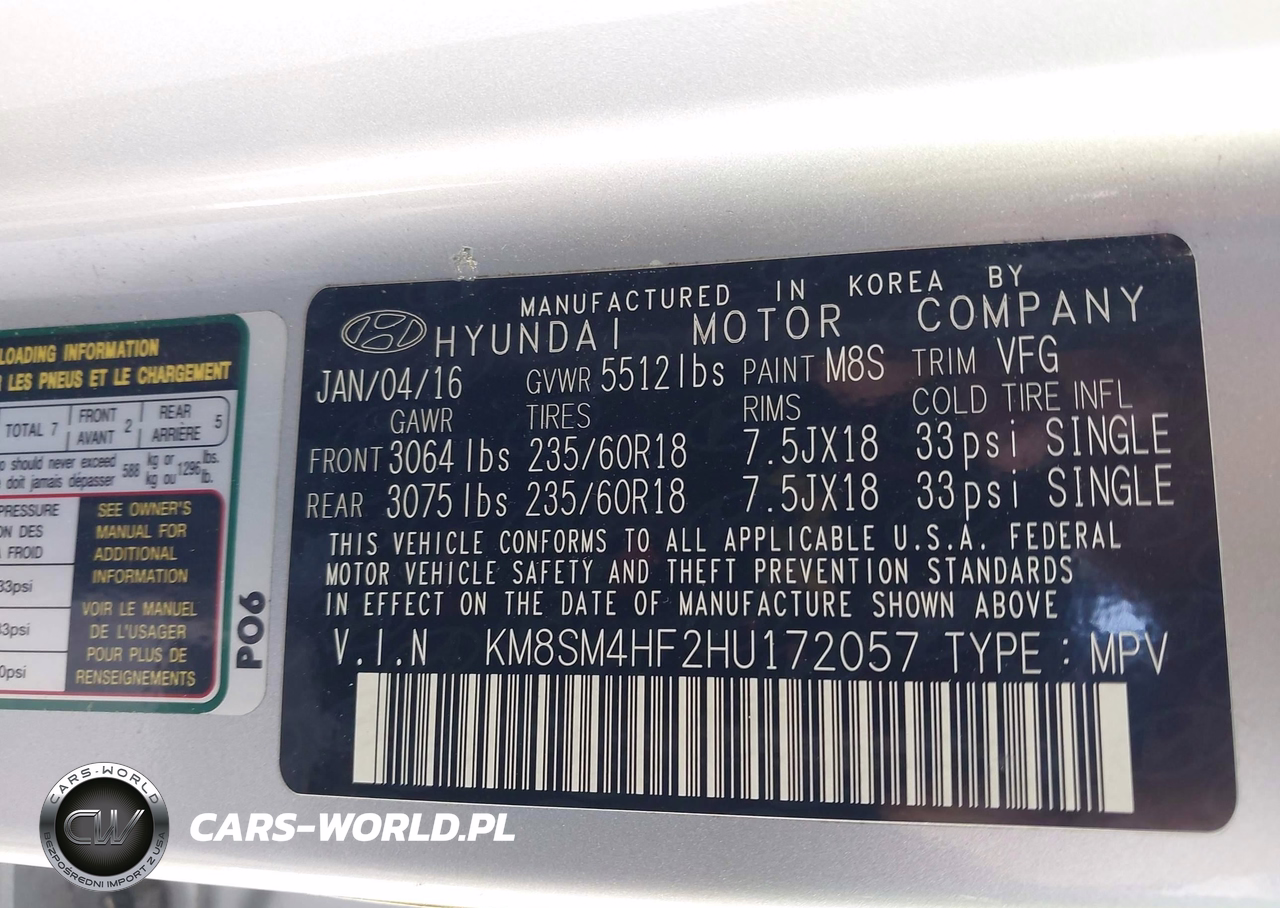 IAAI Nr: I-44614522 VIN: KM8SM4HF2HU172057 Port: Houston, TX