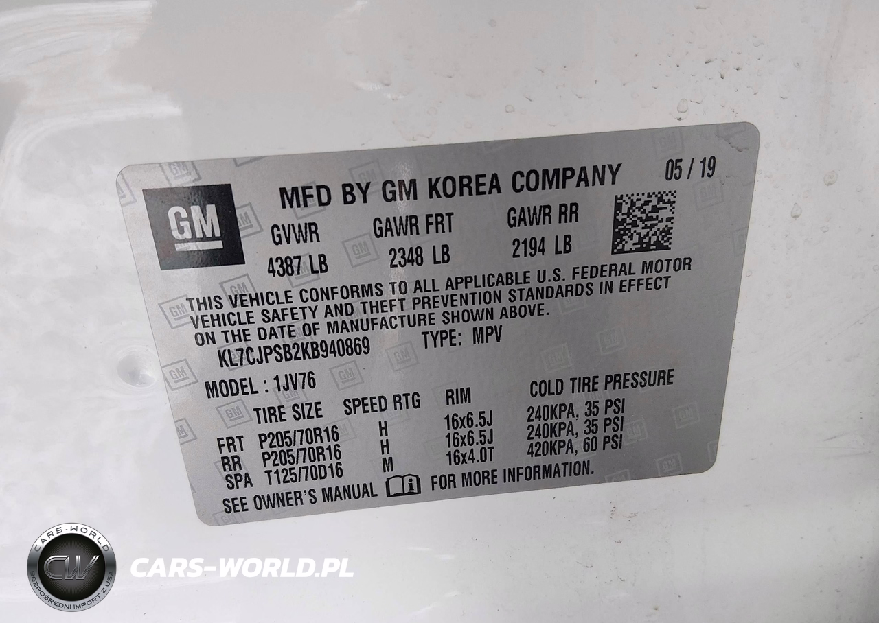 IAAI Nr: I-44615156 VIN: KL7CJPSB2KB940869 Port: Indianapolis, IN
