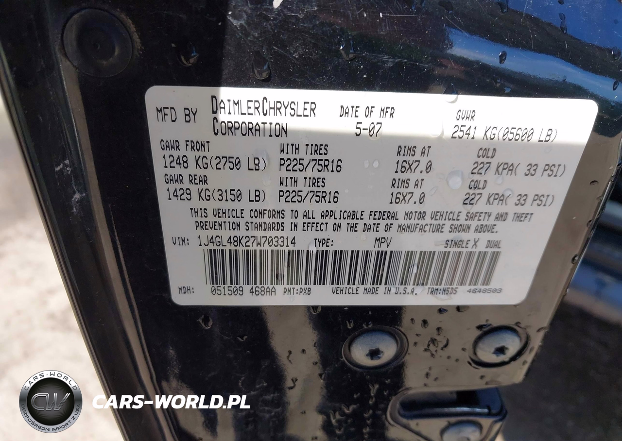 IAAI Nr: I-44615244 VIN: 1J4GL48K27W703314 Port: Elizabeth, NJ