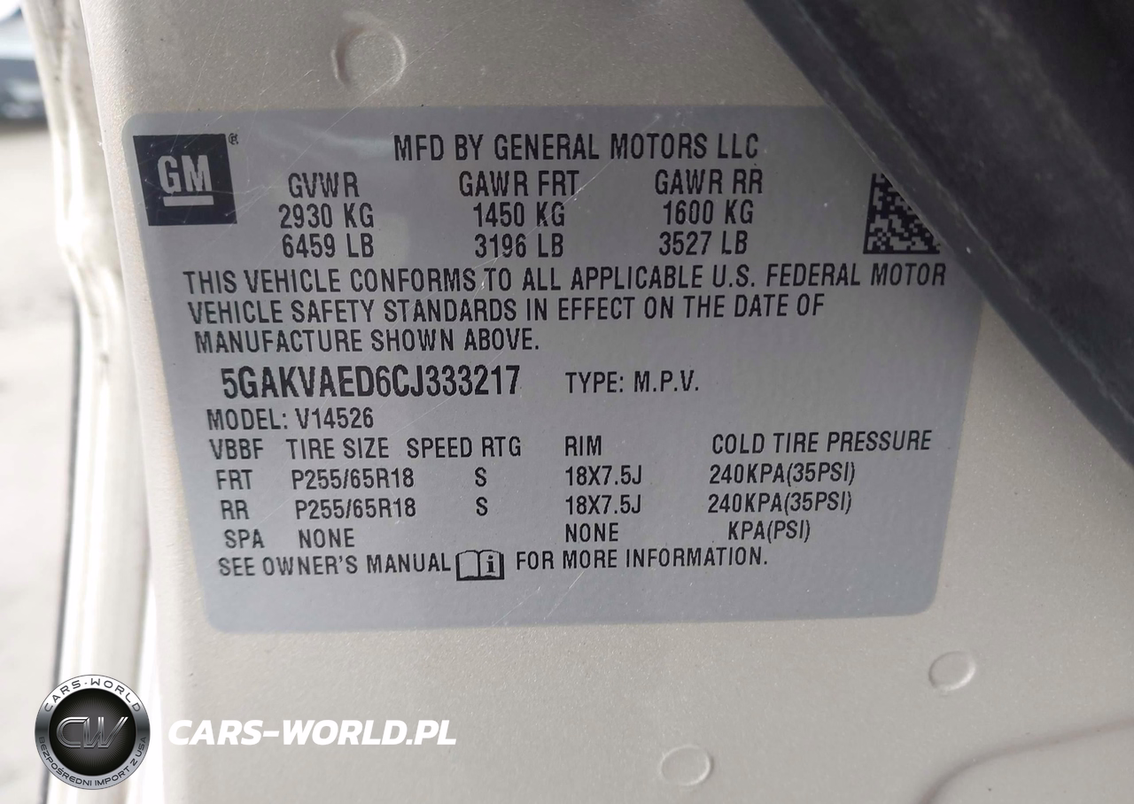 IAAI Nr: I-44615508 VIN: 5GAKVAED6CJ333217 Port: Indianapolis, IN