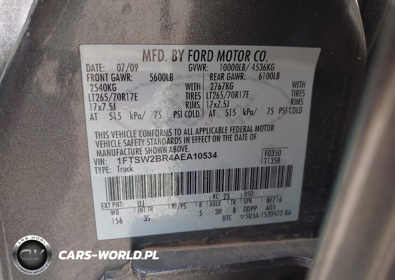 IAAI Nr: I-44615524 VIN: 1FTSW2BR4AEA10534 Port: Houston, TX