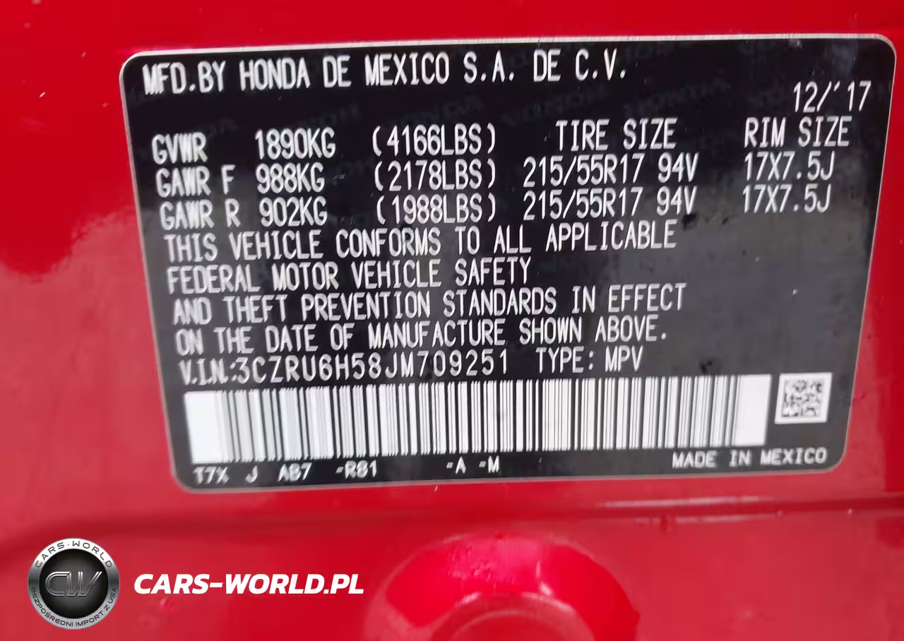 IAAI Nr: I-44615559 VIN: 3CZRU6H58JM709251 Port: Elizabeth, NJ