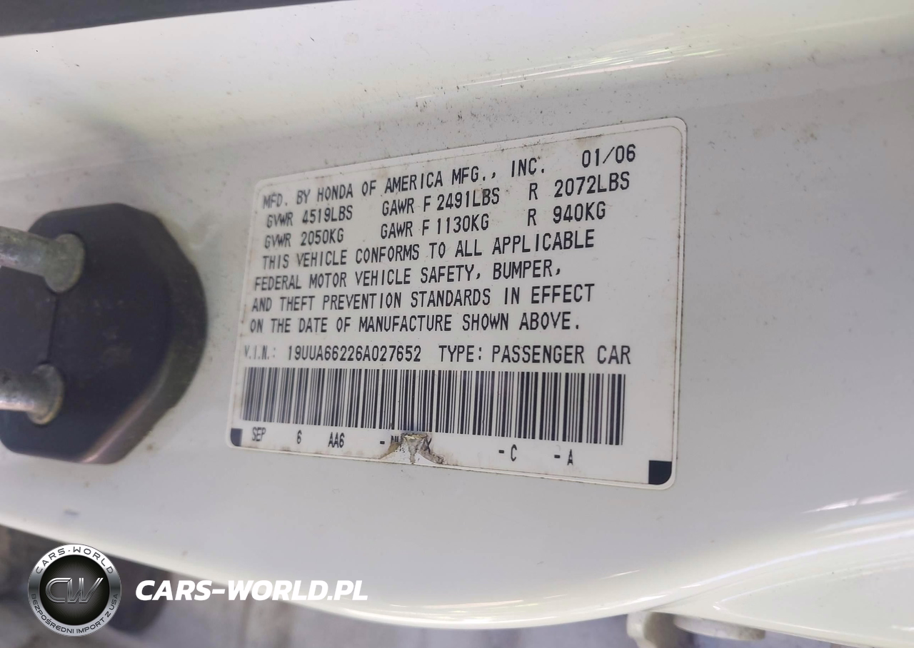 IAAI Nr: I-44615876 VIN: 19UUA66226A027652 Port: Savannah, GA