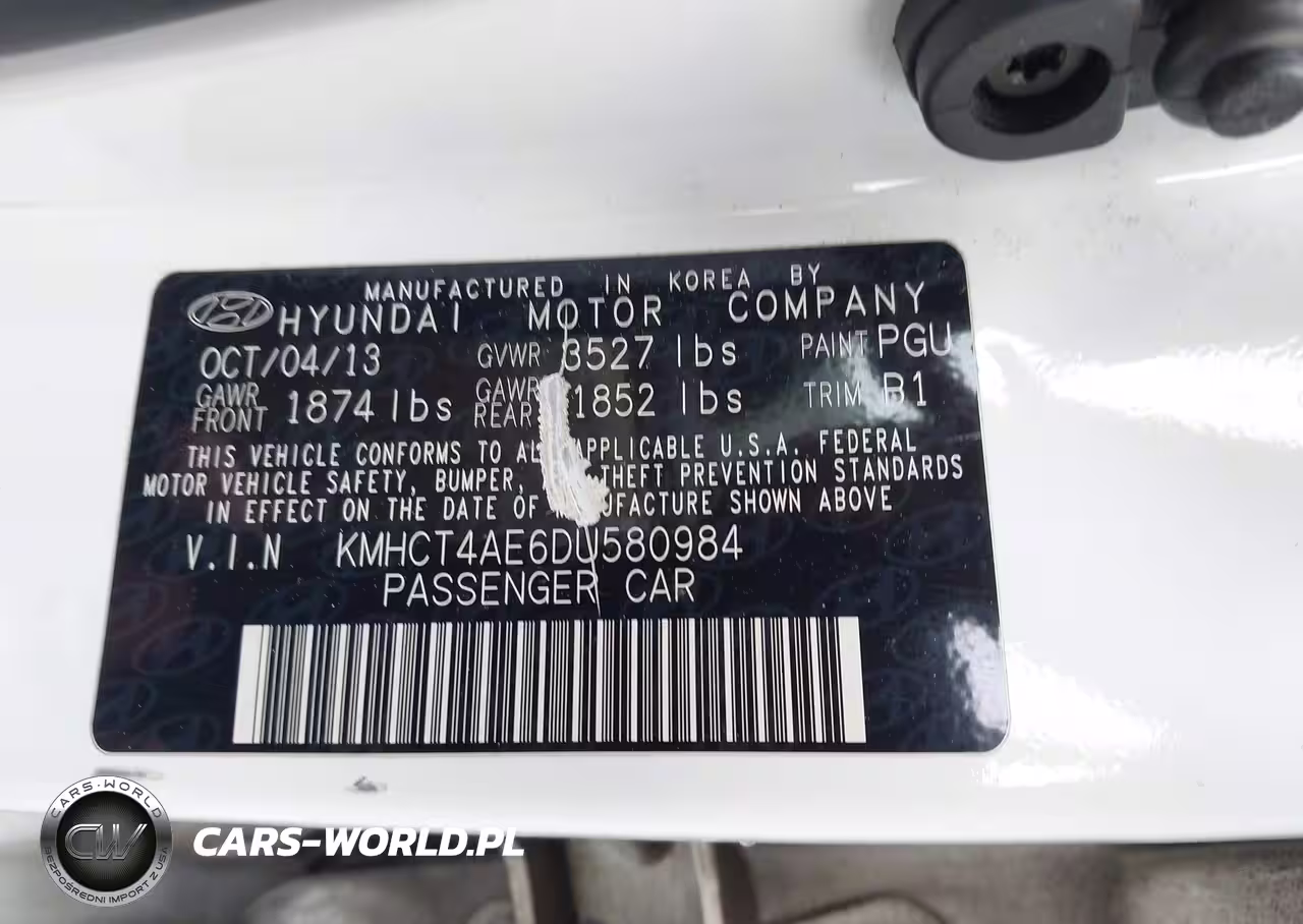 IAAI Nr: I-44616203 VIN: KMHCT4AE6DU580984 Port: Los Angeles, CA