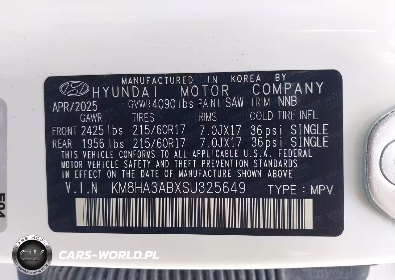 IAAI Nr: I-44616469 VIN: KM8HA3ABXSU325649 Port: Savannah, GA