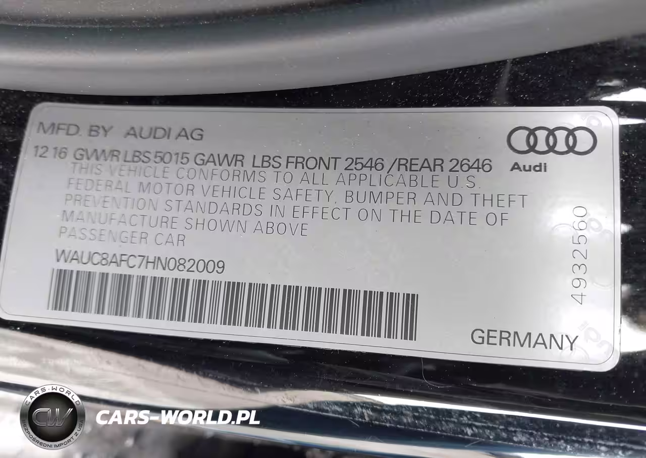 IAAI Nr: I-44616489 VIN: WAUC8AFC7HN082009 Port: Los Angeles, CA