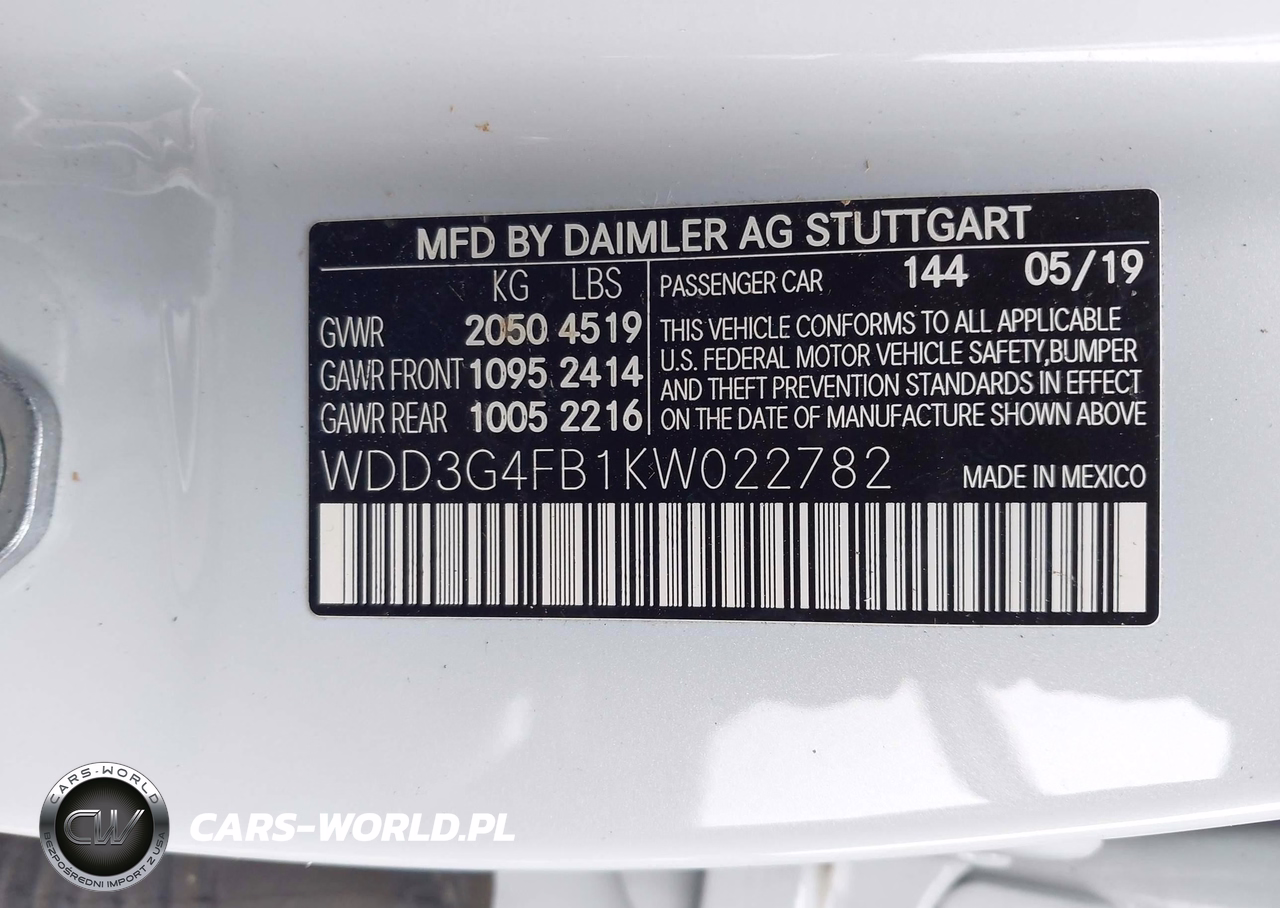 IAAI Nr: I-44616633 VIN: WDD3G4FB1KW022782 Port: Elizabeth, NJ