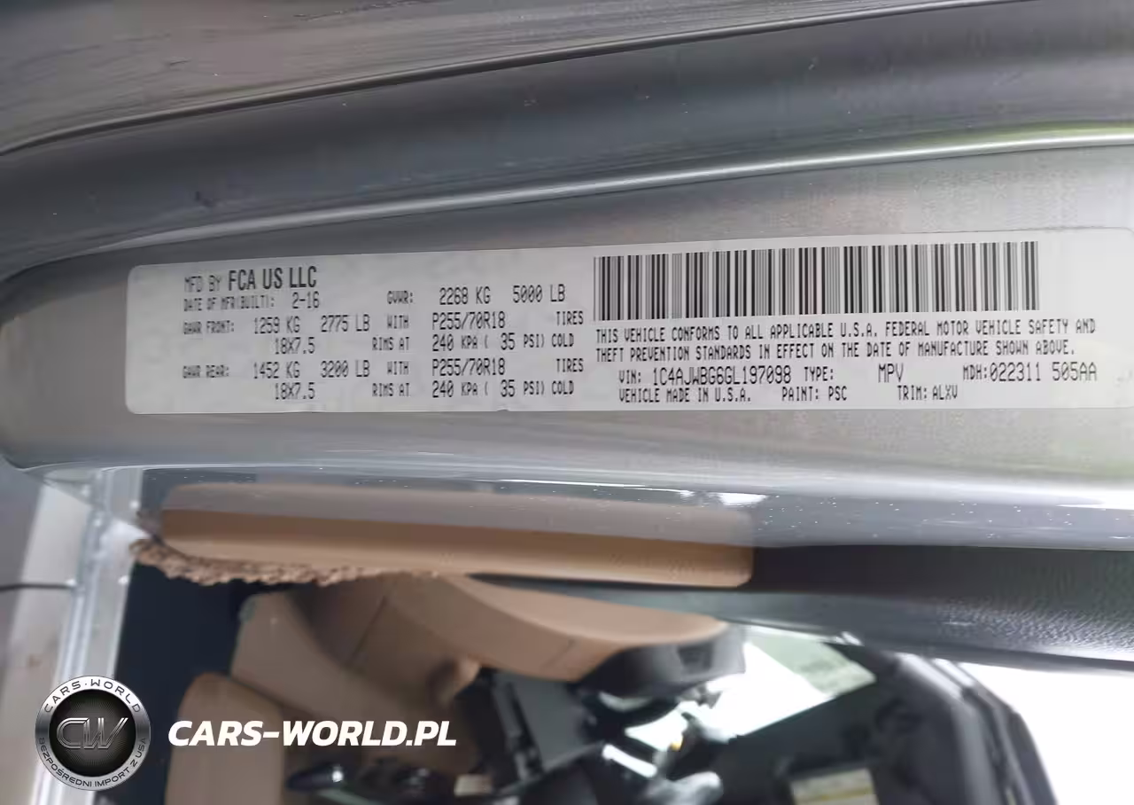IAAI Nr: I-44616684 VIN: 1C4AJWBG6GL197098 Port: Savannah, GA