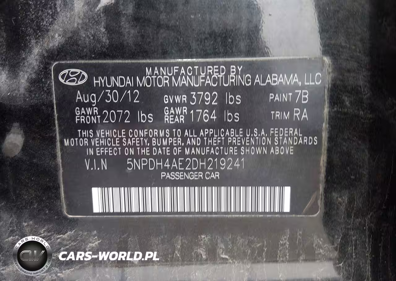 IAAI Nr: I-44617001 VIN: 5NPDH4AE2DH219241 Port: Indianapolis, IN