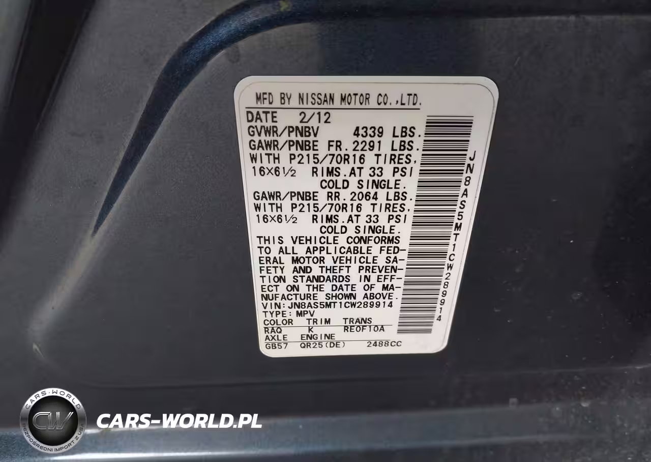 IAAI Nr: I-44617543 VIN: JN8AS5MT1CW289914 Port: Los Angeles, CA
