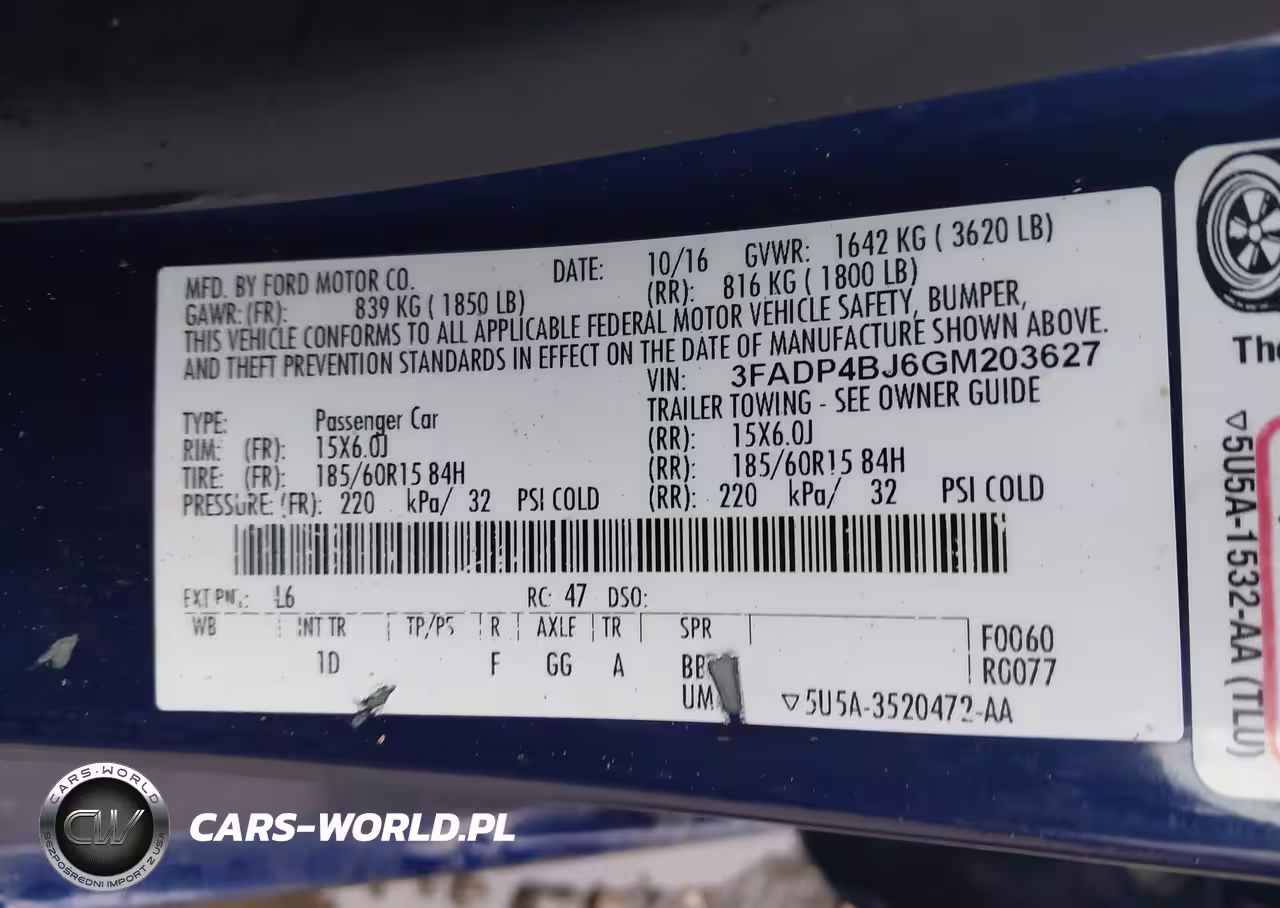 IAAI Nr: I-44617592 VIN: 3FADP4BJ6GM203627 Port: Savannah, GA
