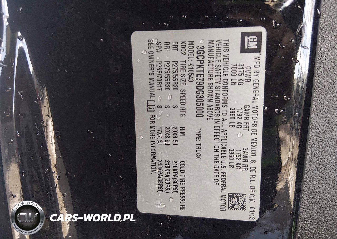 IAAI Nr: I-44618413 VIN: 3GCPKTE79DG305000 Port: Elizabeth, NJ