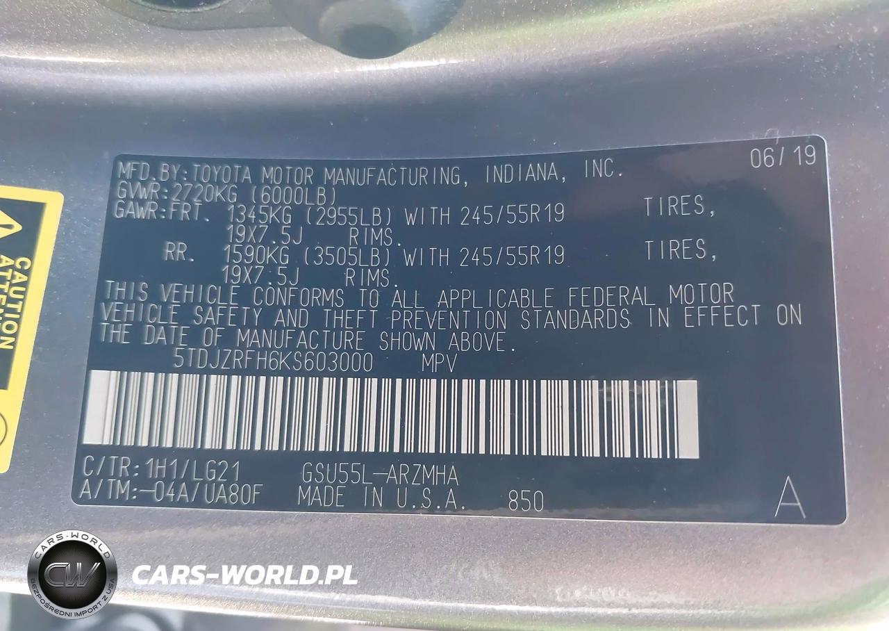 IAAI Nr: I-44618539 VIN: 5TDJZRFH6KS603000 Port: Los Angeles, CA