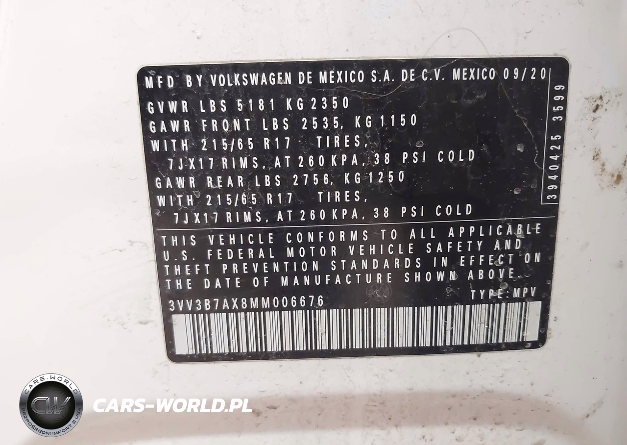 IAAI Nr: I-44619061 VIN: 3VV3B7AX8MM006676 Port: Elizabeth, NJ