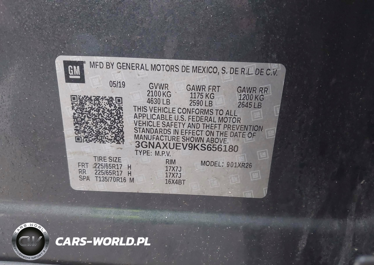 IAAI Nr: I-44619690 VIN: 3GNAXUEV9KS656180 Port: Elizabeth, NJ