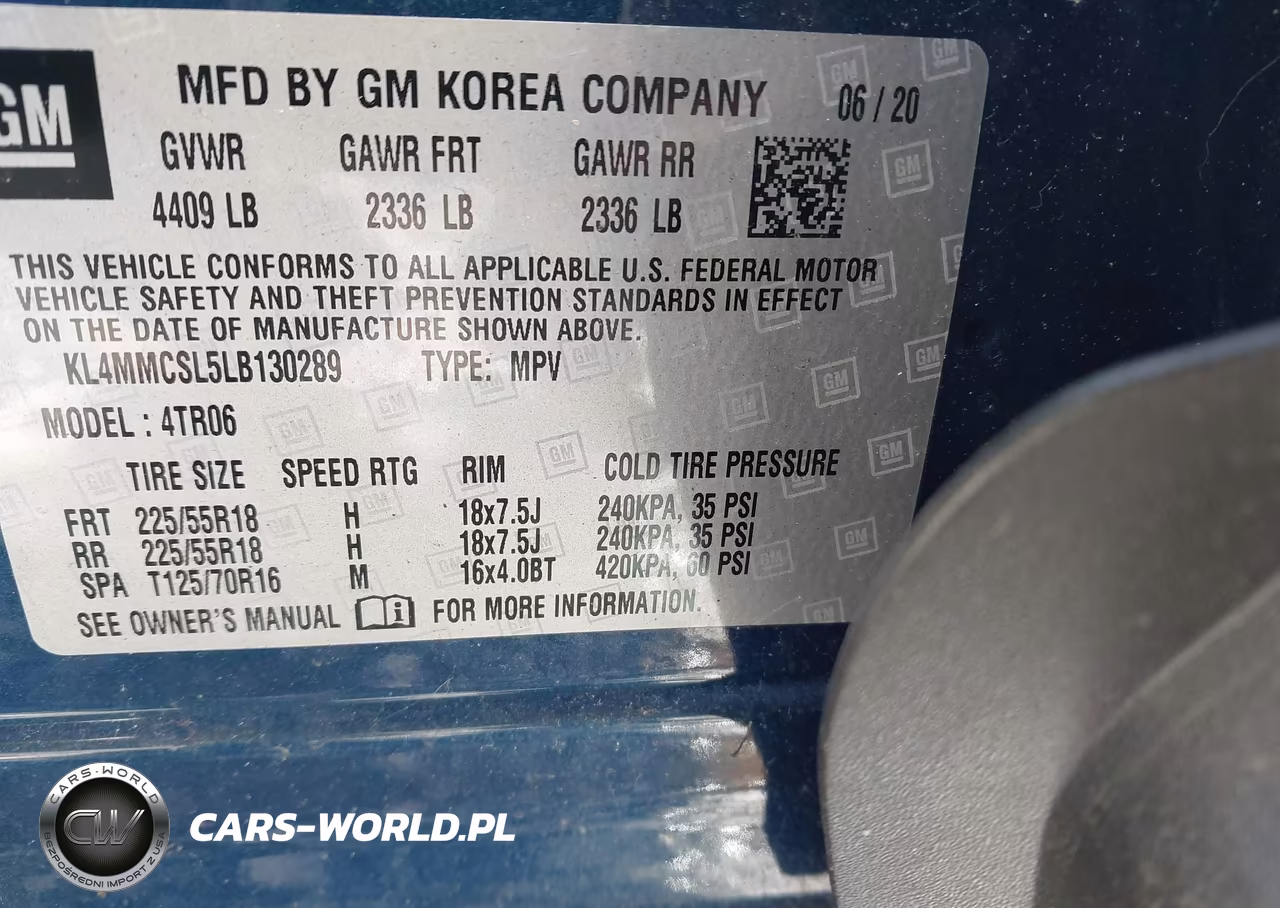IAAI Nr: I-44619953 VIN: KL4MMCSL5LB130289 Port: Indianapolis, IN