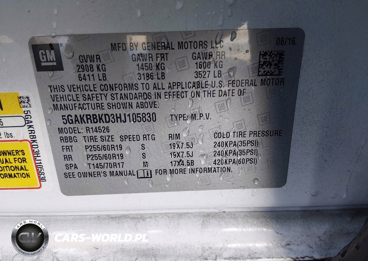 IAAI Nr: I-44620357 VIN: 5GAKRBKD3HJ105830 Port: Savannah, GA